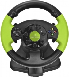 Samostojen modul z plinskim in zavorni pedalom prinaša naravno upravljanje, medtem ko usmerjevalnik (D‑pad) in 13 akcijskih gumbov omogočajo hiter dostop do funkcij v igri. Zasuk volana 180° zagotavlja gladko krmiljenje in večjo natančnost v dirkaških naslovih.