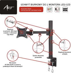 Držalo ART L-01 je idealna izbira za ergonomsko delovno mesto. Zahvaljujoč širokim možnostim nastavitve lahko preprosto prilagodite višino, naklon in zasuk zaslona, da zmanjšate utrujenost oči in vratu ter povečate produktivnost. Robusten dizajn zagotavlja stabilnost tudi pri pogostem ponovnem nastavljanju.