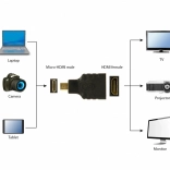 Preprosto pretvorite standardni HDMI v Micro‑HDMI in priključite fotoaparate, kamere ali tablice brez izgube kakovosti.