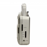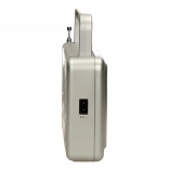 Radio je zasnovan z ročajem za enostavno prenašanje in ima kompaktno srebrno ohišje, ki se poda v vsak interier.