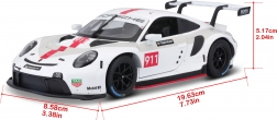 Model ima realistične potiske in grafiko Porsche RSR, ki poudarjajo njegov dirkalni značaj. Gumirane dirkalne pnevmatike in vodljiva sprednja kolesa prispevajo k realističnemu videzu in funkcionalnosti modela, kar ga naredi izjemen dodatek za vsakega ljubitelja avtomobilov.