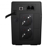 UPS omogoča samodejni ponovni zagon po izpadu, polnjenje v izklopljenem načinu ter s funkcijo Cold Start zažene priključene naprave tudi brez omrežja. Vgrajena prenapetostna zaščita RJ‑11 varuje telefonsko/DSL linijo, USB vrata s podprto programsko opremo ViewPower omogočajo nadzor in varno izklapljanje sistema. Eco način znižuje porabo in ohranja nizke obratovalne stroške.