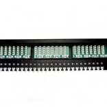 Panel podpira kable s premerom AWG 22–26 in je zelo trpežen, saj prenese več kot 750 priklopnih ciklov po standardu ISO/IEC 11801. Kontaktni material je iz fosforjevega brona s površinskim nikljem in zlatom, kar zagotavlja zanesljivo in stabilno delovanje.