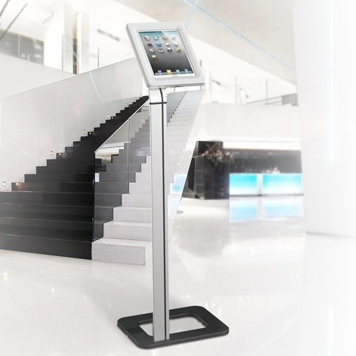 Stojalo za tablični računalnik, samostoječi kiosk, odlikujeta visoka kakovost izdelave in konstrukcija, odporna proti vandalizmu, kar zagotavlja maksimalno varnost za napravo v njem. Predstavljeno ohišje je primerno prilagojeno za montažo na vodoravne površine.