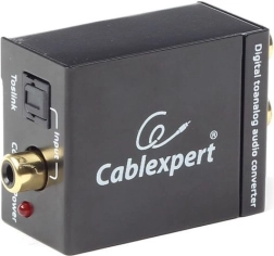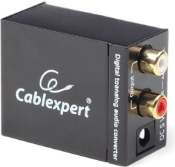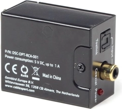 Kompakten pretvornik, ki zlahka spremeni digitalni optični TOSLINK ali koaksialni signal v analogni stereo RCA (L/R). Idealen za povezavo sodobnih virov, kot je Blu‑ray predvajalnik, s starejšimi ojačevalniki ali hišnimi avdio sistemi. Enostavna namestitev in vključeni 5 V DC napajalnik.