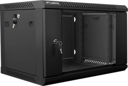 Stenska strežniška omara 19'' 6U 600x450 mm, črna s steklenimi vrati
