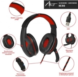 Slušalke ART HERO USB so zasnovane za igralce, ki potrebujejo jasno komunikacijo in stabilno delovanje. Velike, dobro prilegajoče se ušesne blazinice nudijo odlično pasivno izolacijo in udobje tudi pri daljšem igranju. Vgrajena USB zvočna kartica poskrbi za bogato, dinamično reprodukcijo zvoka brez potrebe po ločenem zvočnem vmesniku.