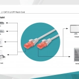 Kabli kategorije 6 razreda E DIGITUS so izdelani in preizkušeni v skladu s standardoma ISO/IEC 11801 in DIN EN 50173 CAT 6, kar zagotavlja njihovo visoko združljivost in zanesljivost pri namestitvah. Te rešitve ožičenja vam zagotavljajo odlično zmogljivost v okviru infrastrukturnega sistema DIGITUS CAT 6. Zmogljivost kabla je temeljito preizkušena do 250 MHz, vključno s parametri, kot je presluh (NEXT). Kabli so posebej zasnovani tako, da izpolnjujejo vsa merila za različne uporabe.