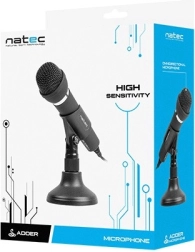 Mikrofon Adder je zasnovan za čisto reprodukcijo zvoka brez motečih šumov, z občutljivostjo -55 dB.