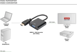 - HDMI → VGA (video), avdio prek 3,5 mm