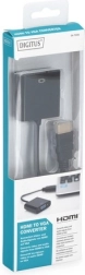 Univerzalni adapter DIGITUS pretvori signal HDMI v VGA in hkrati ponuja 3,5 mm avdio izhod. Podpira Full HD 1080p, deluje plug & play in ne zahteva gonilnikov – idealno za priklop prenosnikov, predvajalnikov in igralnih konzol na starejše monitorje in projektorje z VGA.