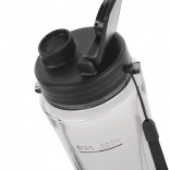Naprava je zasnovana za vsakodnevno uporabo – ohišje iz nerjavnega jekla je enostavno za vzdrževanje in se odlično poda v vsako kuhinjo. Za varnost skrbijo nedrseče nogice in blokada nepravilne sestave, zato se mešalnik zažene le, ko je vse pravilno nameščeno. Dve steklenički iz Tritana brez BPA sta trpežni, lahki in zdravstveno neoporečni.