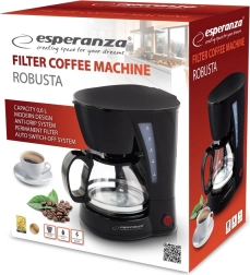 Esperanza Robusta kapa aparat za kavo prinaša udobje in učinkovitost v vašo kuhinjo. Opremljen je s funkcijo samodejnega izklopa po 40 minutah po zaključku ciklusa, kar zagotavlja varnost in varčevanje z energijo. Zahvaljujoč trajnemu večkrat uporabnemu filtru znižuje vaše stroške uporabe.