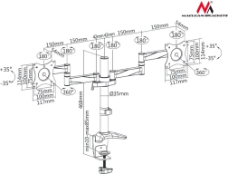 Stojalo za dva monitorja znamke Maclean ponuja univerzalne možnosti montaže za monitorje z diagonalo od 13" do 27", če njihova teža ne presega 8 kg. Stojalo je primerno za različne modele LCD ali LED monitorjev in televizorjev ter podpira standarde VESA.