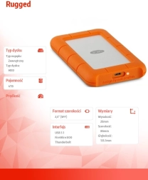 Zunanji disk LaCie Rugged USB‑C 4TB je zasnovan za uporabnike, ki potrebujejo odporno shrambo z visoko kapaciteto. Njegova kompaktna zasnova z dimenzijami 86 mm × 135,1 mm × 26 mm in maso le 400 g omogoča enostavno prenašanje. S kapaciteto 4 TB boste imeli dovolj prostora za vse datoteke, vključno s fotografijami, videi in dokumenti.