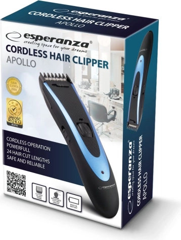 Brezžični strižnik las ESPERANZA Apollo za hitro in udobno striženje doma. Ponuja do 24 dolžin striženja v razponu 1,5–24 mm, ergonomsko obliko in enostavno upravljanje. Prihranite čas in denar ter si ustvarite natančno pričesko in ureditev brade kadarkoli.