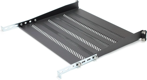 Ta črna 1U polica za 19" rack z dimenzijami 483 × 350 mm je idealna za varno namestitev opreme, ki nima lastnih rack nosilcev. Perforirana jeklena pločevina podpira učinkovito ventilacijo in pomaga znižati temperaturo naprav v omrežnih in strežniških omarah.