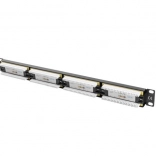 Patch panel je pasivni del strukturirane kabelske povezave, uporablja se za zaključevanje in organizacijo zvitih kablov v 19" rack omarah. Opremljen z 24 neekraniranimi porti RJ-45 kategorije 5e, je idealna rešitev za učinkovito upravljanje kablov. Zaradi IDC/LSA konektorjev je montaža enostavna in hitra.