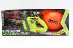 Ta otroška motorna žaga Tuff Tools je idealna za otroke, ki imajo radi igro vlog mehanika ali gozdarja. Po pritisku stranskega gumba se žaga zažene, sprožilec pa aktivira gibanje verige in učinke zvoka žaganja, ki igri dodajo pristnost.