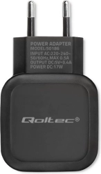 Omrežni polnilec Qoltec vam zagotavlja zanesljivo napajanje vaših naprav v vsaki situaciji. Z močjo 3,4 A omogoča hkratno polnjenje dveh naprav z prilagoditvijo napetosti priključenim napravam.