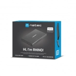 Zunanje aluminijasto ohišje NATEC RHINO GO pretvori vaš 2,5" HDD ali SSD v prenosni pomnilnik z visoko hitrostjo. Zahvaljujoč vmesniku USB 3.0 dosega prenose do 5 Gb/s in podpira diske SATA I/II/III z višino 9,5 mm in kapaciteto do 4 TB. Namestitev je bliskovita – le vstavite disk, priključite USB in začnite kopirati.