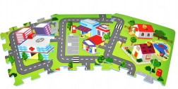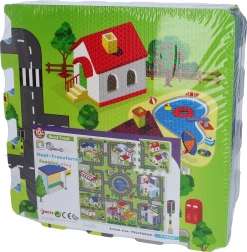 Posamezni deli so popolnoma pralni in ne vsebujejo škodljivih snovi. Uporabite jih lahko kot igralno podlogo ali kot samostojne bloke za gradnjo in ustvarjalno zabavo. Tematika mesta spodbuja domišljijo ter razvoj fine in grobe motorike.
