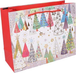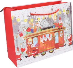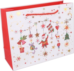 Ta božična darilna vrečka je odlična izbira za elegantno in hitro zavijanje daril. Mere 24,5 × 19,5 × 9,5 cm so praktične za manjše predmete, sveče, dodatke ali kozmetične komplete. Štirje različni praznični motivi dajejo vsakemu darilu edinstven videz.
