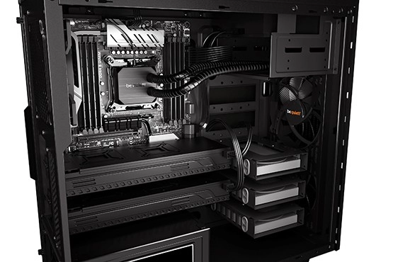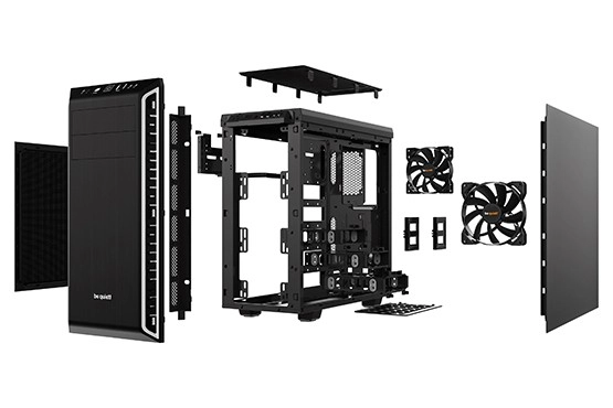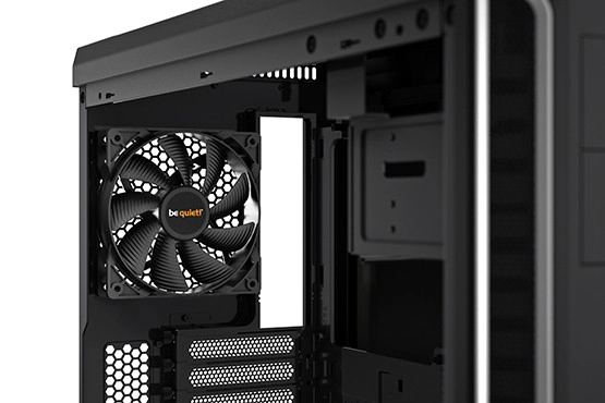 Dva prednameščena ventilatorja PURE WINGS 2 zmanjšujeta turbulence, medtem ko dušilni materiali občutno znižujejo hrup celotnega sistema.