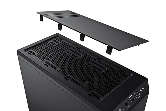 Zgornjo ploščo lahko zaprete za maksimalno tiho delovanje, delno odprete za boljši pretok zraka ali popolnoma odprete za namestitev radiatorja vodnega hlajenja.