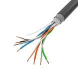 Vzdržljiv zunanji mrežni kabel UTP kategorije 5e z dolžino 305 m in polnimi bakrenimi vodniki zagotavlja stabilen prenos podatkov do 100 MHz. Gelirana konstrukcija za zaščito pred vlago, 100 % baker (CU), AWG 24 – polna žica, vzdržljiv črn plašč in metrsko označevanje za enostavno namestitev.