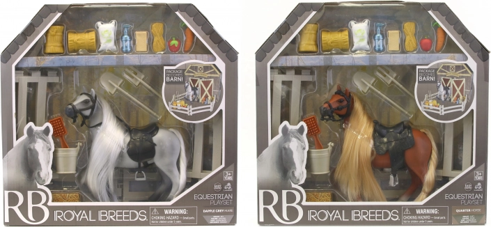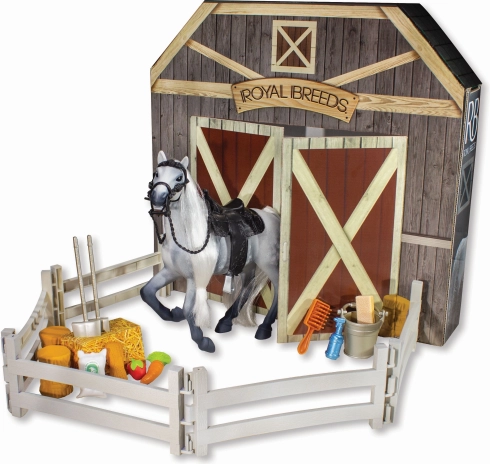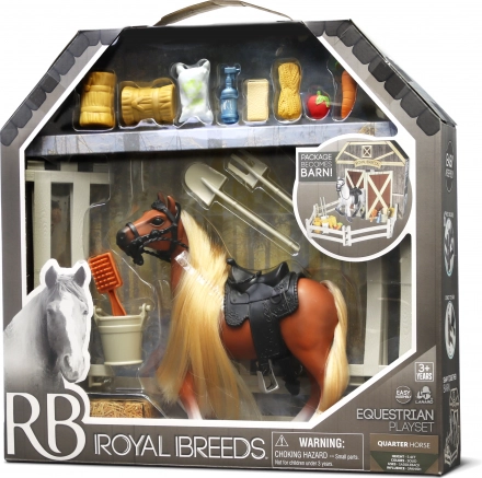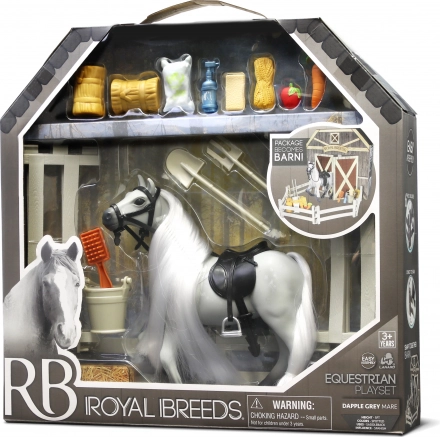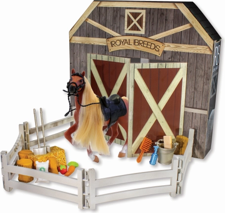 Ta set vsebuje Konj Royal Breeds velikosti 17 cm z interaktivnimi elementi, ki pritegnejo vsakogar otroka. Odpiralna zadnja stran embalaže širi možnosti igre in se preoblikuje v hleve: