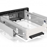 Praktičen nosilec za 3,5" HDD s SATA vmesnikom za vgradnjo v 5,25" režo omogoča hitro zamenjavo diskov brez orodja, podpira Hot Swap in Plug & Play, ima zaklepna vratca za varnost ter kovinsko ohišje z dušilnimi gumijastimi podložkami za tiho delovanje.