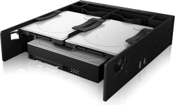 Spremenite prosto 5,25" mesto v vašem računalniku v univerzalni nosilec: montažni nosilec ICY BOX omogoča namestitev 2× 2,5" SSD/HDD in 1× 3,5" diska z brezvijačnim pritrjevanjem, anti-vibracijskim izvedbenim pristopom in enostavno zamenjavo zahvaljujoč hitri namestitvi.