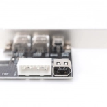 Dve zunanji vtičnici omogočata takojšnje priklop periferije, medtem ko notranji priključek služi za napeljavo na sprednjo ploščo ali notranje FireWire naprave. Vgrajen 4-pin napajalni priključek zagotovi vratom dodaten priklopni tok za energijsko zahtevne periferne enote.