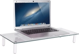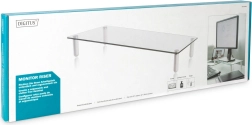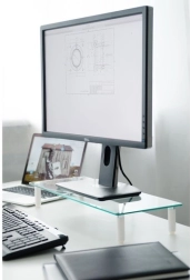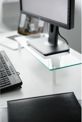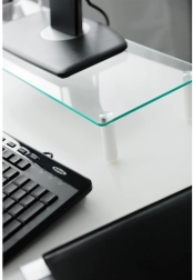 Stekleni podstavek za monitor omogoča namestitev vašega monitorja v ergonomski položaj in hkrati omogoča več prostora na mizi. Zaradi kaljenega varnostnega stekla in nedrsečih blazinic zagotavlja stabilnost monitorja.