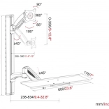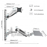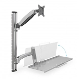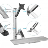 Učinkovit stenski nosilec omogoča namestitev monitorja ali televizorja in tipkovnice, kar zagotavlja maksimalno prilagodljivost in udobje pri delu ali doma. Opremljen je z luknjami po standardu VESA (75x75, 100x100), kar omogoča namestitev monitorjev do 27" in teže do 8 kg. Nosilec lahko monitor vrti za 360 stopinj in ponuja obsežne možnosti horizontalne in vertikalne nastavitve. Poleg tega je opremljen z integriranim sistemom za upravljanje kablov, kar zagotavlja čisto in organizirano območje. Izdelan je iz kakovostnih materialov s sivo prašno prevleko.