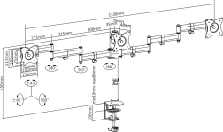 Univerzalno stojalo za tri monitorje ali televizorje z montažo na namizno ploščo omogoča razširitev vizualnega delovnega prostora. Ima VESA odprtine, združljive z merami 75x75 in 100x100.
