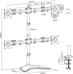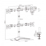 Stojalo za štiri monitorje je popolna izbira za organizacijo delovnega mesta in povečanje produktivnosti. Priključite lahko do štiri monitorje ali televizorje zahvaljujoč odprtinam v standardu VESA (75x75, 100x100, 200x100), kar olajša montažo zaslonov z diagonalo do 27 palcev.