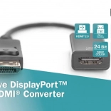 Vgrajen aktivni čip zagotavlja zanesljivo pretvorbo signala iz DisplayPorta v HDMI tudi pri zahtevnejših sestavah.