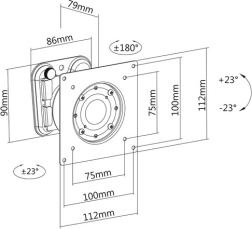 Nosilec za monitorje in televizorje omogoča enostavno montažo na steno zahvaljujoč standardu VESA (75x75, 100x100). Drži zaslone z diagonalo do 27 palcev ali večje pri maksimalni teži 15 kg.