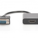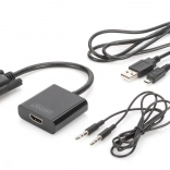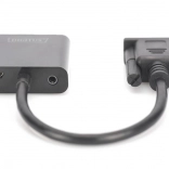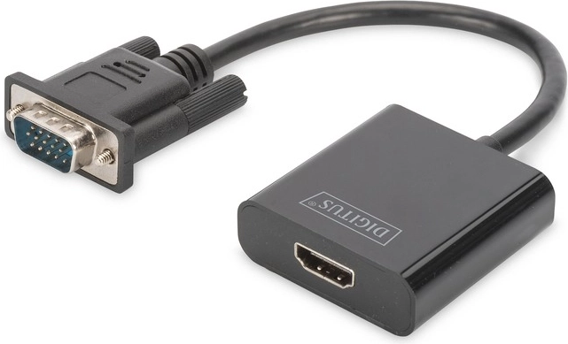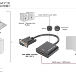 Pretvorba analognega signala VGA v digitalni signal HDMI vam omogoča povezavo naprav, ki imajo le VGA izhod, na primer z monitorjem, televizorjem ali projektorjem z vhodom HDMI. Ker VGA vhod prenaša le video signal, je pretvornik opremljen tudi z 3,5-mm avdio priključkom. To zagotavlja, da so morebitni stereo zvočni signali prav tako pretvorjeni in vključeni v HDMI video, zato je njihovo predvajanje prek HDMI mogoče, na primer na vašem televizorju.
