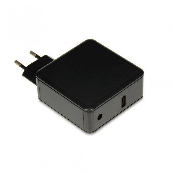 Vgrajen EU vtikač v ohišju prihrani prostor v torbi. Vgrajen USB priključek 2 A omogoča hkratno polnjenje telefona ali dodatne opreme.