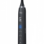 Moderna sonična zobna ščetka v elegantni črni barvi ponuja do 5 načinov čiščenja, vodoodpornost IPX7, tiho delovanje ≤ 40 dB in dolgo avtonomijo do 40 dni z enim polnjenjem. Idealna za vsakodnevno nego, občutljive zobe in beljenje.
