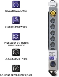Siva prenapetostna letva Quick Switch je idealna izbira za dom, pisarno in delavnico. Ponuja 8 vtičnic za hkratno napajanje več naprav ter 1,8‑m napajalni kabel za prilagodljivo postavitev. Vgrajeno, osvetljeno nožno stikalo omogoča udobno upravljanje napajanja brez sklanjanja.
