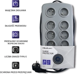 Ta prenapetostni podaljšek je idealna rešitev za dom, pisarno in delavnico. Zagotavlja varno napajanje več naprav hkrati in z varistorsko zaščito zanesljivo ščiti pred nenadnimi nihanji napetosti. Osvetljeno nožno stikalo Quick Switch poenostavi vsakodnevno uporabo – stanje napajanja vidite na prvi pogled, napetost pa udobno vklopite ali izklopite z nogo.