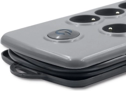 Minimalistična zasnova v sivi barvi se poda sodobnim interierjem. Praktične podrobnosti, kot sta možnost navijanja odvečnega kabla in priprava za montažo na pohištvo, pomagajo ohranjati red za TV-steno, pod pisalno mizo in v kuhinji. Otroške zaščite v vtičnicah in neoprijemljiv, negorljiv material PP povečujejo varnost pri vsakodnevni uporabi.
