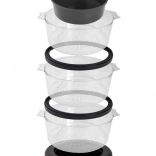 Prostorne prozorne posode omogočajo hkratno pripravo zelenjave, rib, riža in mesa – brez mešanja vonjav.