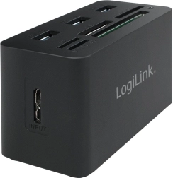 Ta LogiLink USB hub ponuja 3 USB 3.0 vhode in vgrajen čitalnik kartic, kar ga naredi idealnega za razširitev povezljivosti vaše naprave.