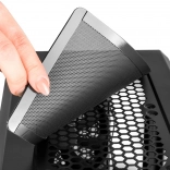 Možno je namestiti tri SSD 2,5" in dva HDD 3,5" diska brez uporabe orodja. SSD diski so nameščeni na obeh straneh, kar ne blokira pretoka zraka.