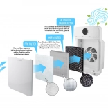 Naprava učinkovito absorbira formaldehid, benzen, ksilene in druge škodljive pline, hkrati pa odstranjuje neprijetne vonjave. Negativni ioni, ki jih ustvarja ta čistilec, imajo sposobnost nevtralizirati pozitivno nabite delce prahu in dima, s čimer učinkovito zmanjšujejo bakterije in viruse.